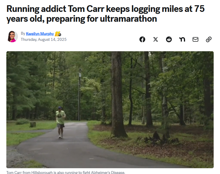 Running addict Tom Carr keeps logging miles at 75 years old, preparing for ultramarathon, ABC 11